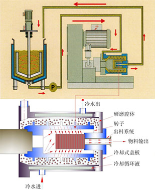 縮短漿料在磨腔內的滯留時間,有效抑制溫度上升。通過循環冷卻水的冷卻,可實現低溫砂磨。