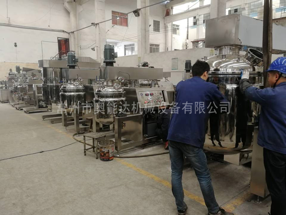 攪拌形式——主鍋為框式攪拌加均質頭,油水鍋有錨式攪拌、分散盤以及漿葉式攪拌等。